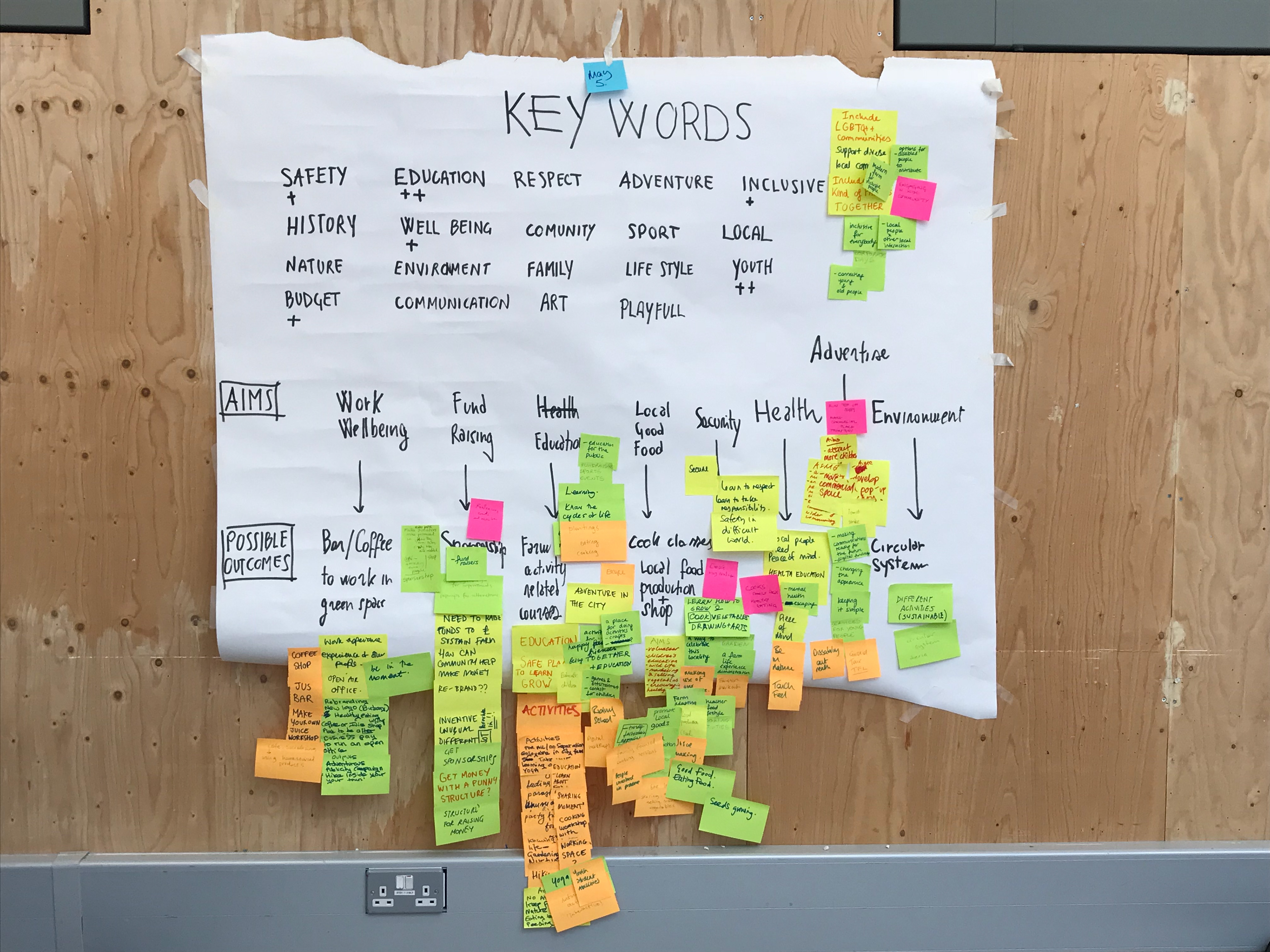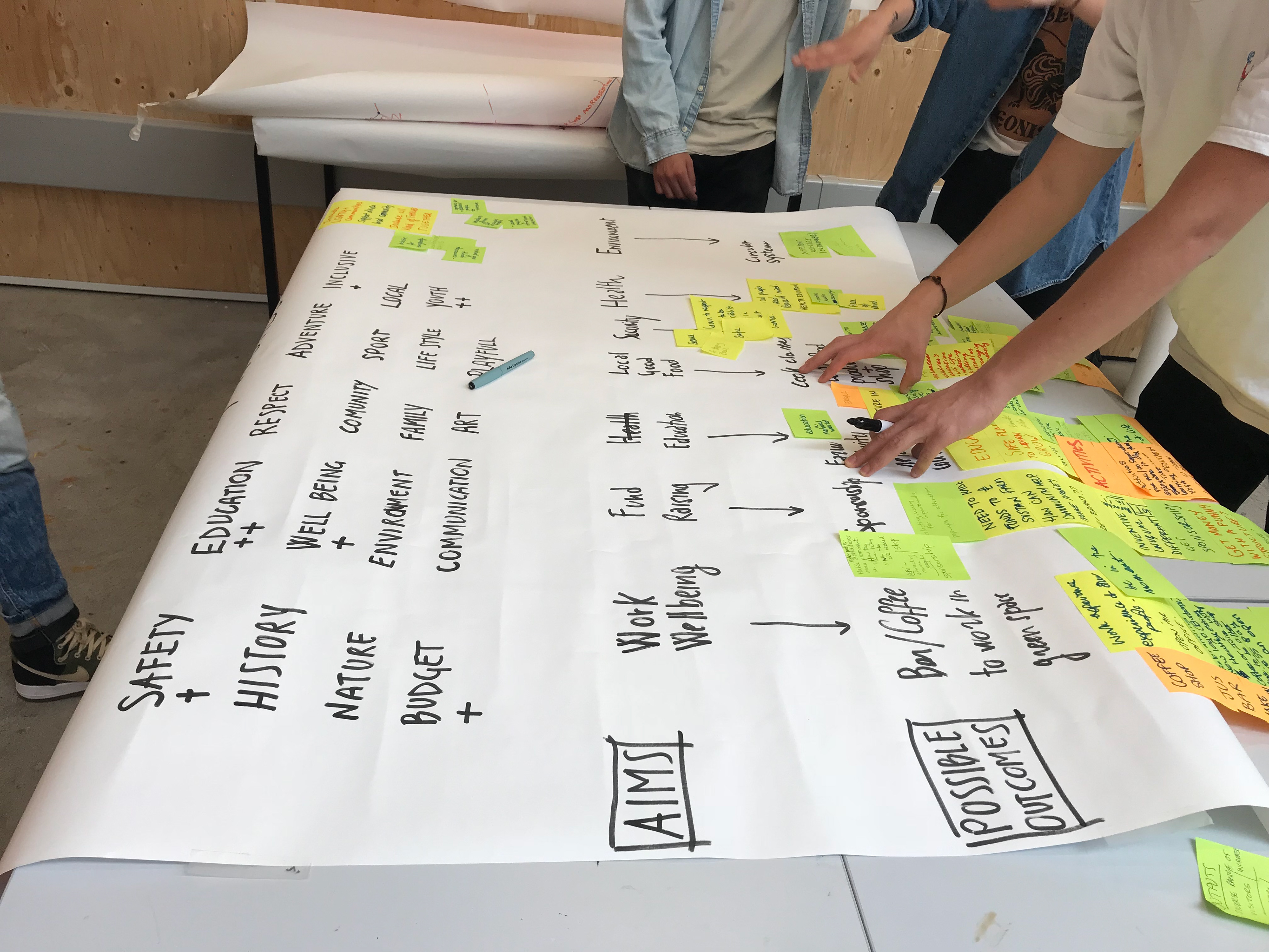Our extensive and diverse research gave us a plethora of data to process. We used different methods to sift through and gain insights and discover key themes. Through this feedback process with farm staff we discovered four key themes of the farm’s goals. We first looked for common keywords which helped us compile a list of key themes that are important to the farm. Finally we created a map of stakeholders using the various sticky notes of “actors” from each group. We then gathered together and spent time listing every insight found on sticky notes and began categorizing them into similar areas. We eventually found nine different key areas that people had been making suggestions for. We then grouped similar areas to form four areas which would become our 4 briefs.