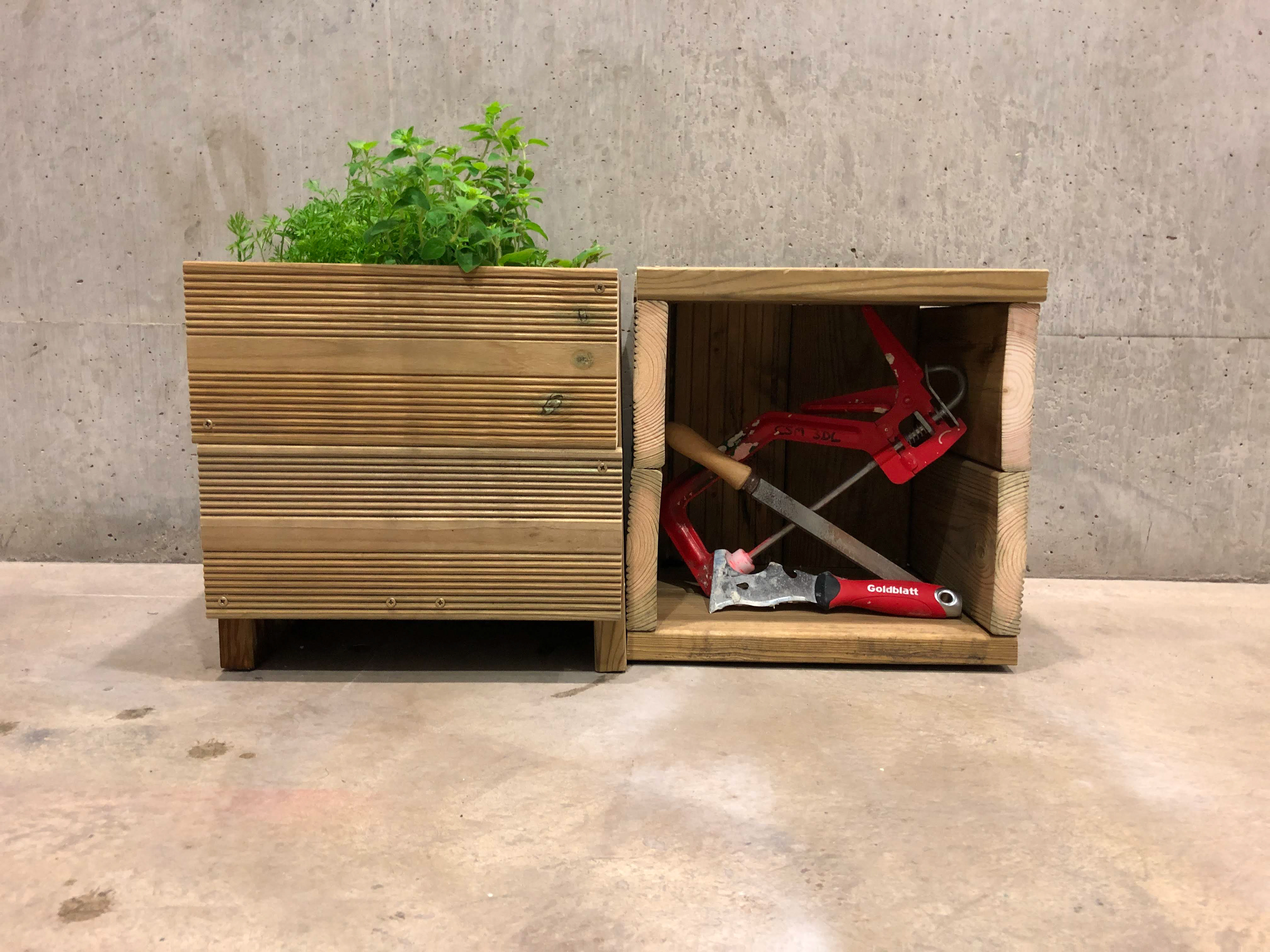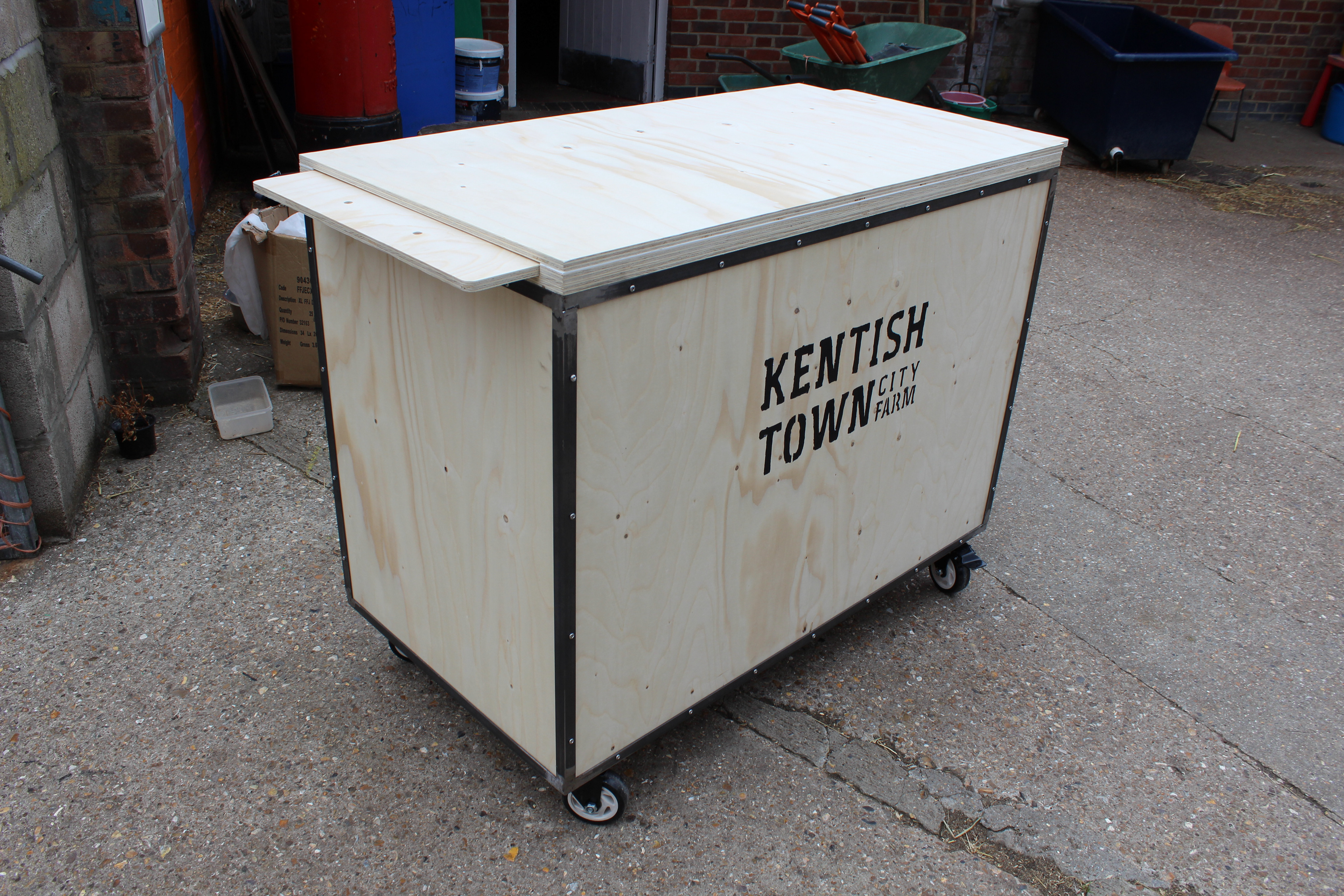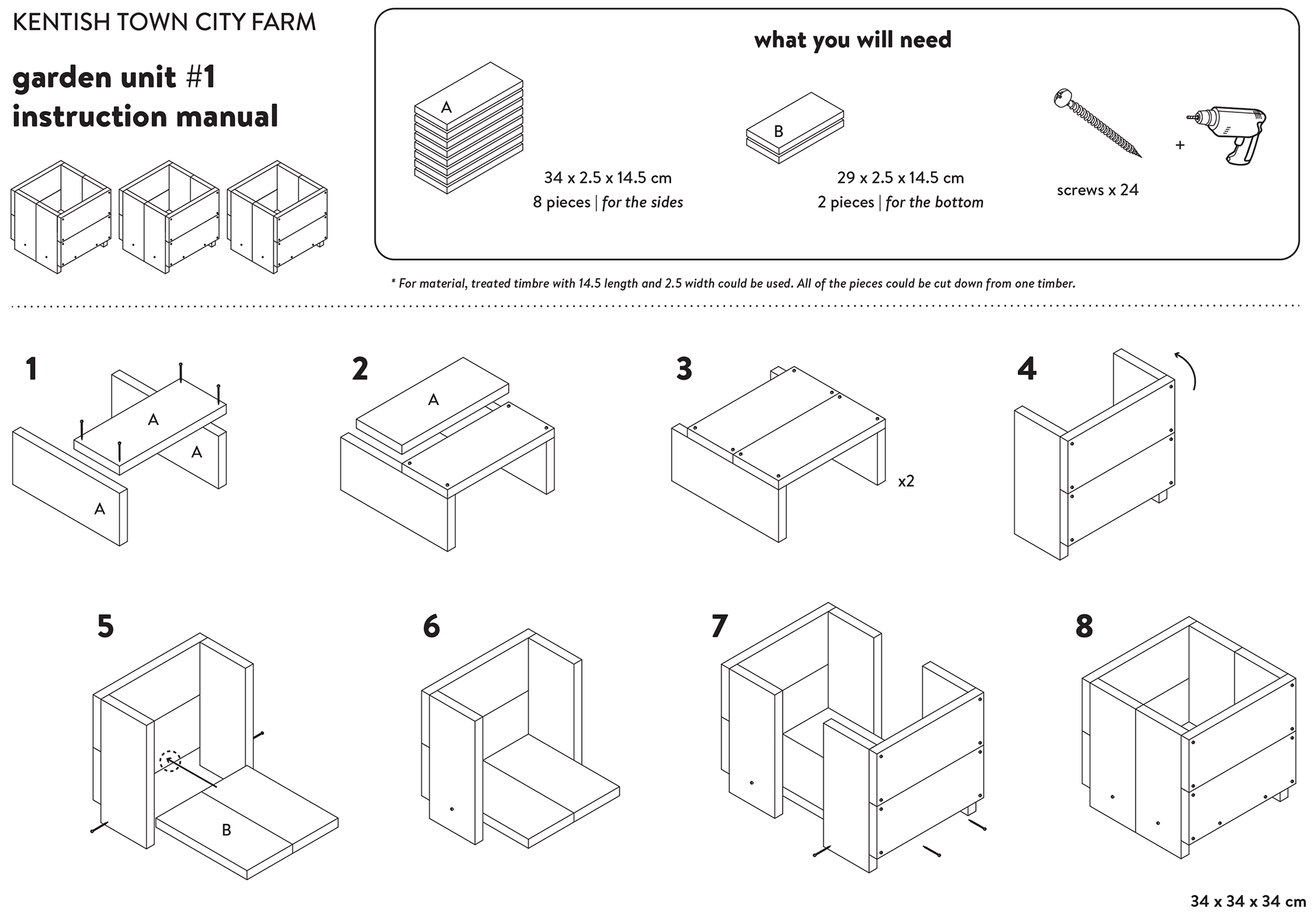 We designed stackable planters to save space and avoid the polluted soil below. They also acted as adaptable furniture throughout the farm. These boxes were designed to be made from minimal material, skill, and tools to keep costs down. We also designed a scheme for the boxes to be rented out to community members as well as notebooks for box owners and child visitors.