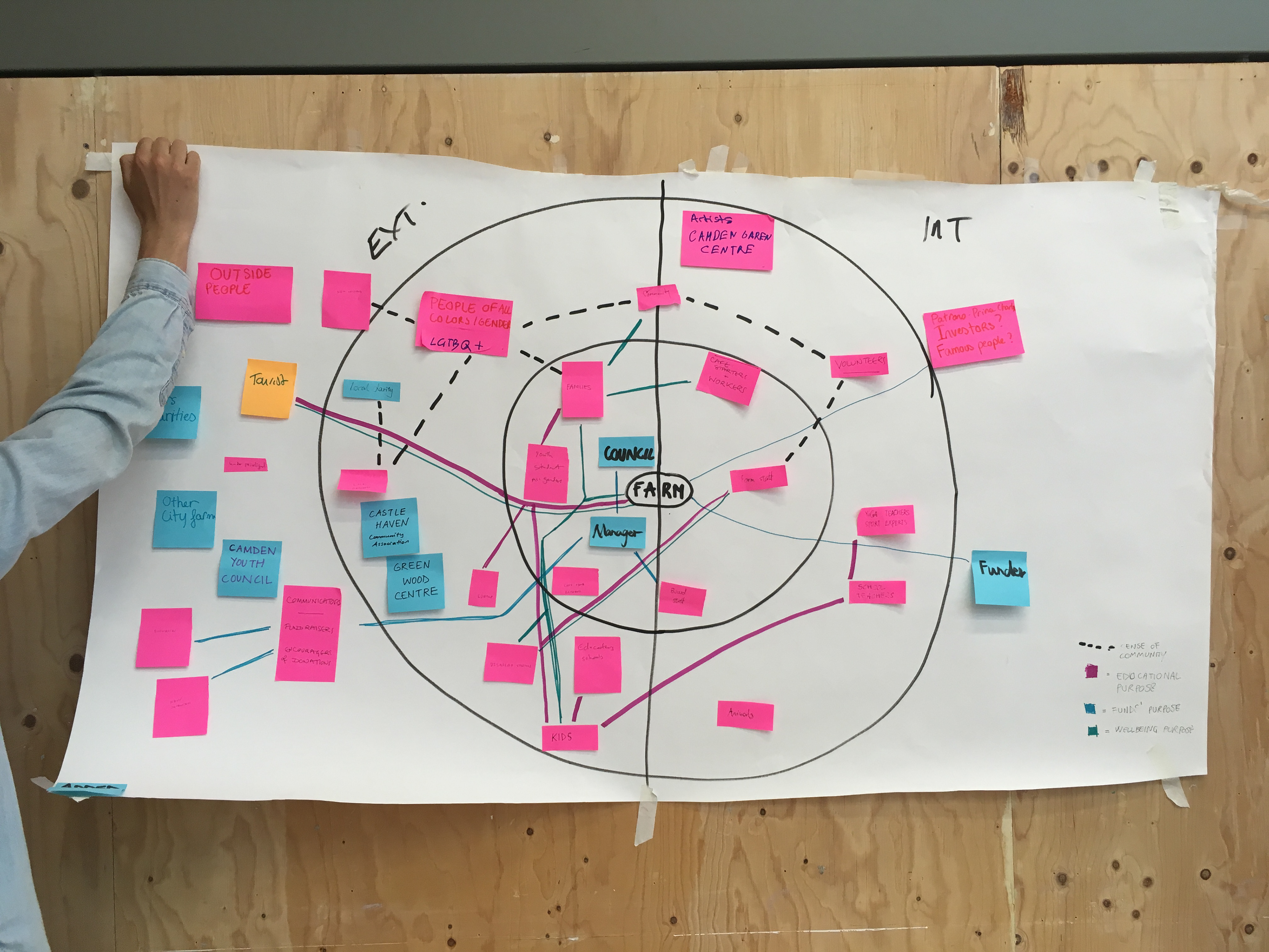 Research was entirely based on public engagement. My group and I engaged the community through volunteering, visiting other farms, attending community markets and other events, and running open design workshops at the farm. We worked to design interactive group activities that helped learn and validate our insights. It encouraged people to step outside of their normal ways of thinking and become problem solvers.