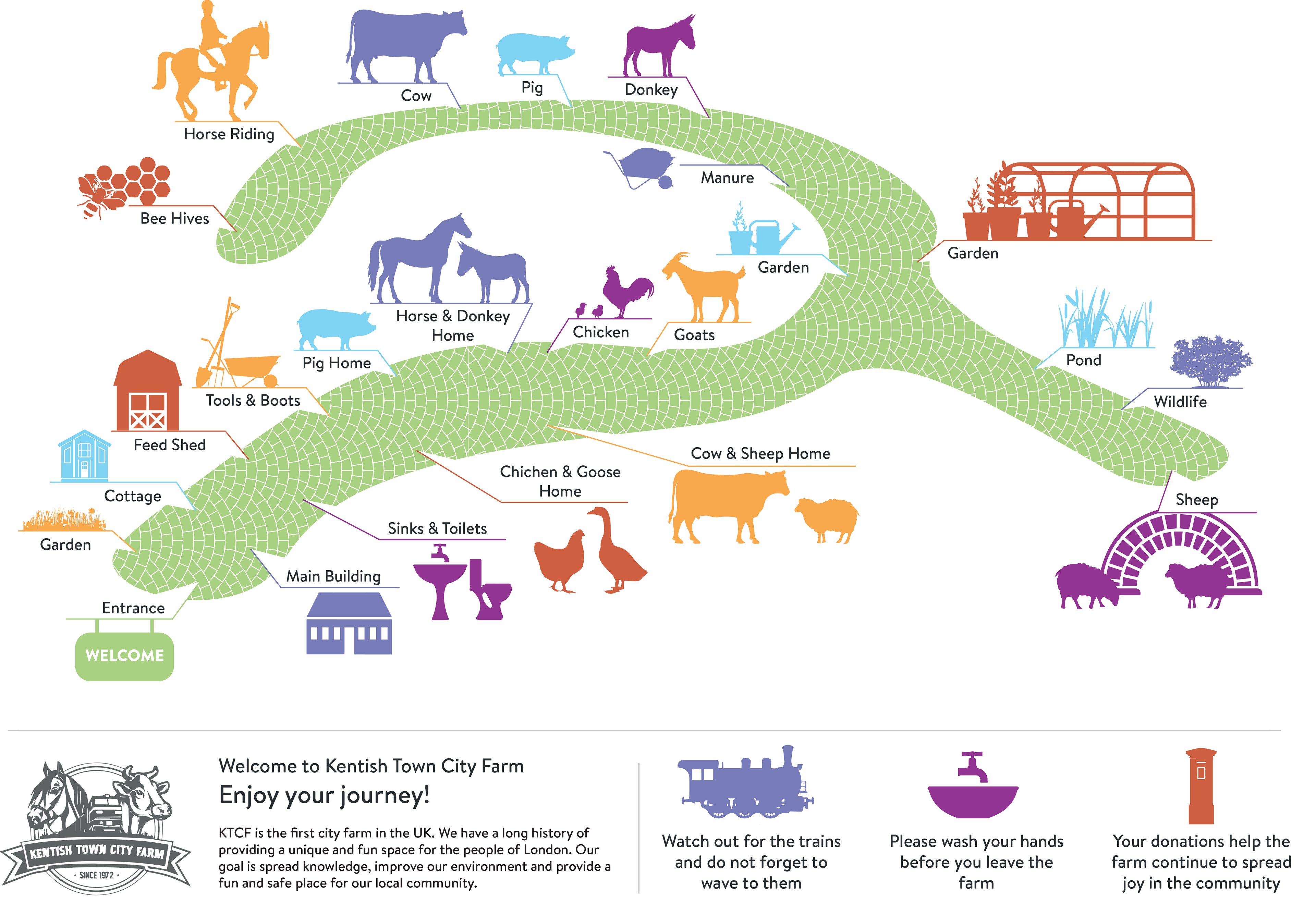 We created a new brand and style for the farm. We then created maps and signs that would help make the farm more engaging and interactive and match the new brand.