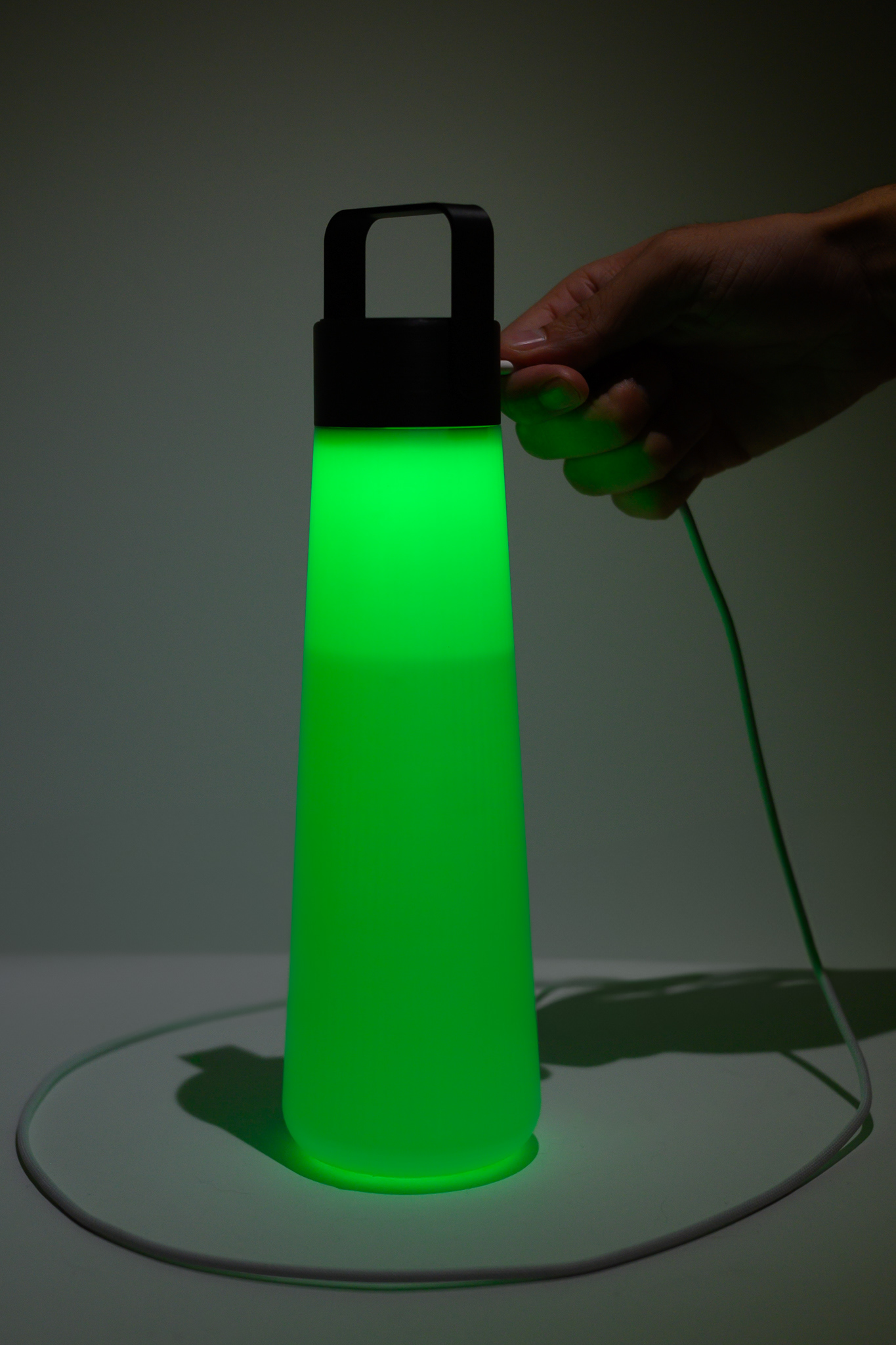 I was inspired during a backpacking trip where my friends and I had to set up camp at night. I wanted to design a lightweight lantern that would be convenient to grab when I needed it. Refrakt is a water bottle that doubles as a lantern so you always have light with you while also saving space in your pack. I experimented with different bottle and cap shapes. I eventually landed on a design that blends typical form language of a lantern with the ergonomics and proportions of a water bottle.